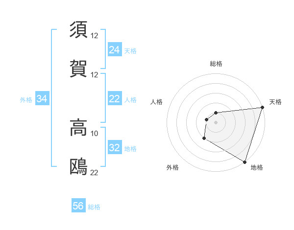 須賀 高鴎さんの総格は56画の1点!