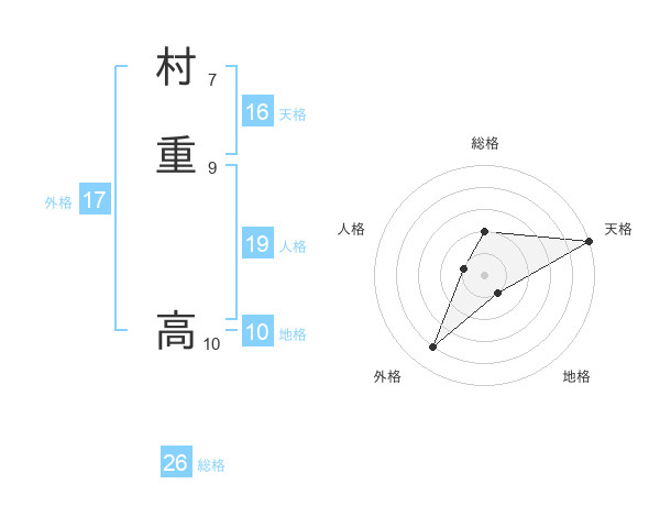 村重 高さんの天格は16画の5点!