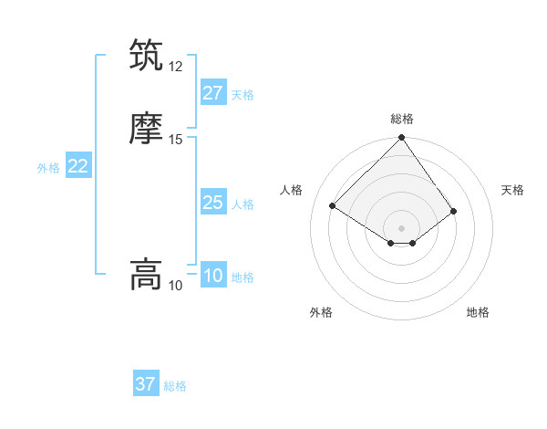 筑摩 高さんの総格は37画の5点!