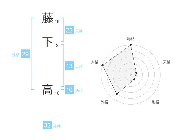 藤下 高さんの総格は32画の5点!