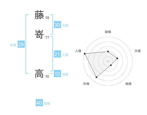藤嵜 高さんの人格は21画の5点!