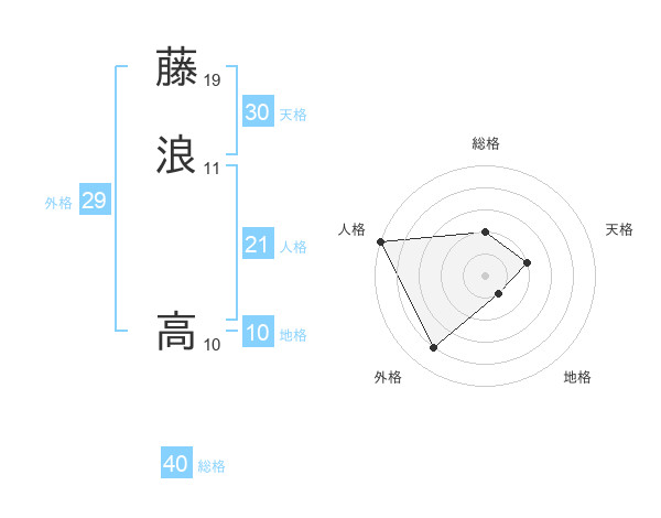 藤浪 高さんの総格は40画の2点!