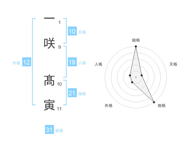 一咲 髙寅さんの総格は31画の5点!