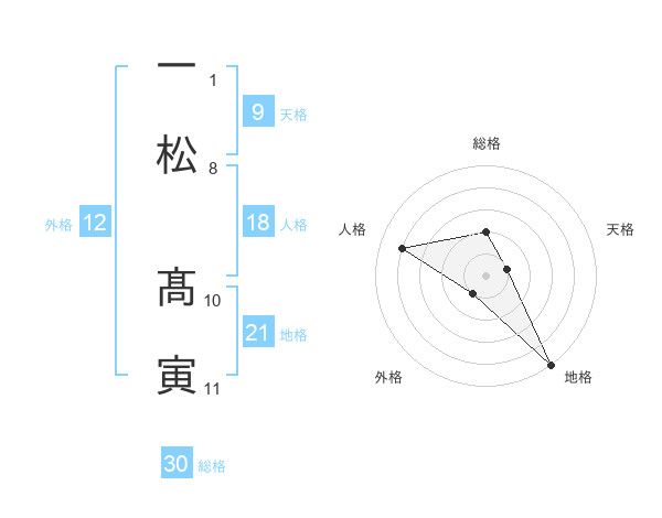 一松 髙寅さんの総格は30画の2点!