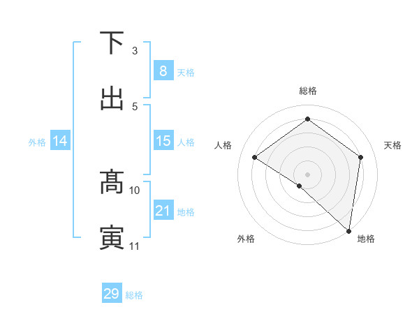 下出 髙寅さんの総格は29画の4点!
