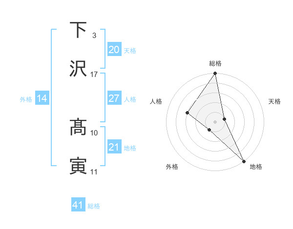 下沢 髙寅さんの総格は41画の5点!