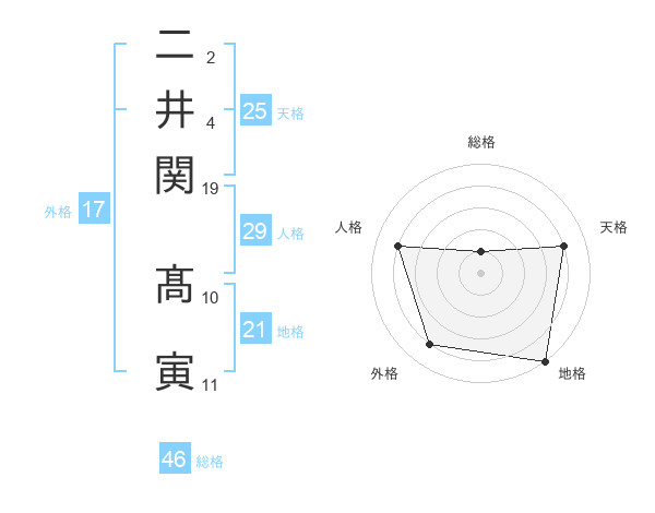二井関 髙寅さんの総格は46画の1点!