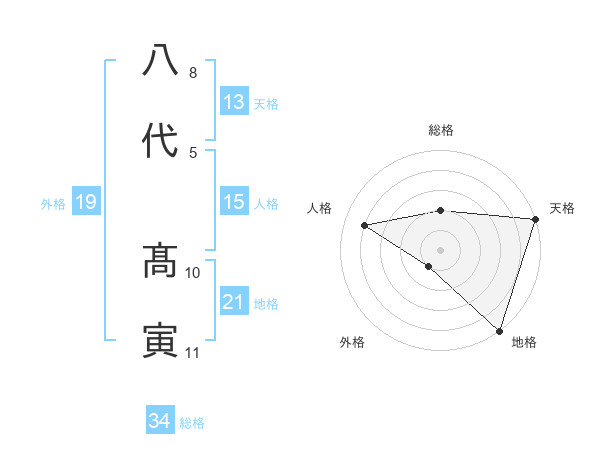 八代 髙寅さんの地格は21画の5点!