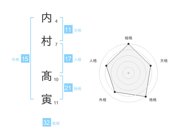 内村 髙寅さんの総格は32画の5点!