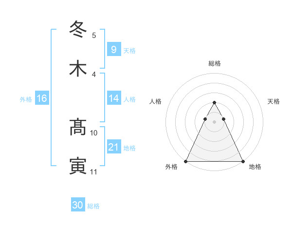 冬木 髙寅さんの総格は30画の2点!