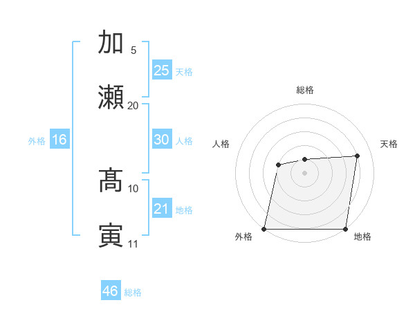 加瀬 髙寅さんの外格は16画の5点!
