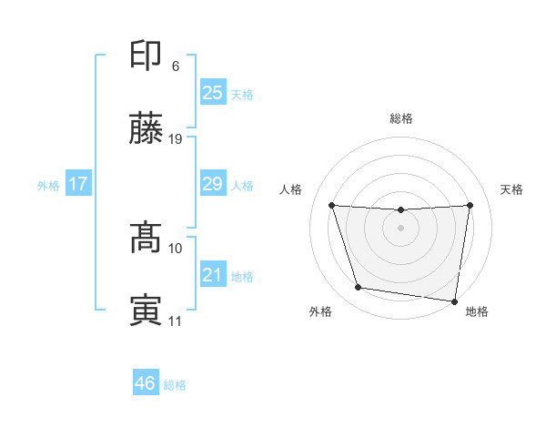 印藤 髙寅さんの地格は21画の5点!