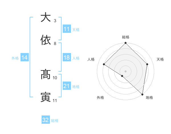 大依 髙寅さんの総格は32画の5点!
