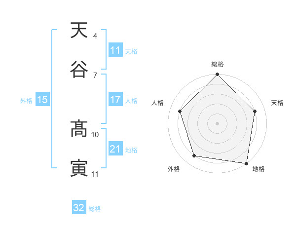 天谷 髙寅さんの総格は32画の5点!