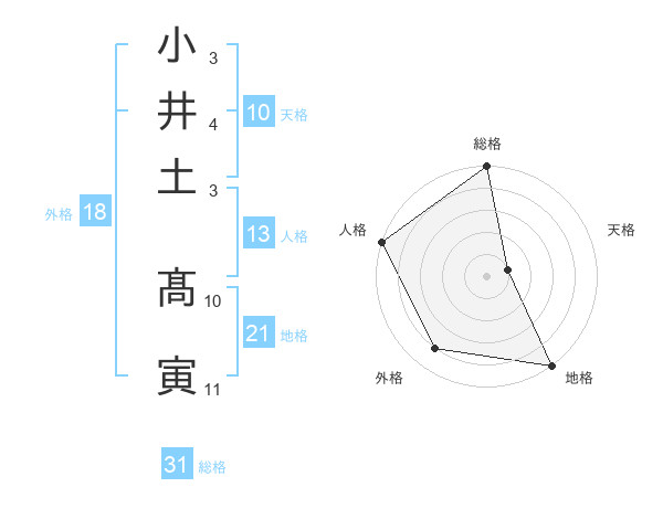 小井土 髙寅さんを姓名の画数から五運を鑑定