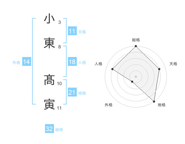 小東 髙寅さんを姓名の画数から五運を鑑定