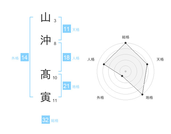 山沖 髙寅さんの総格は32画の5点!