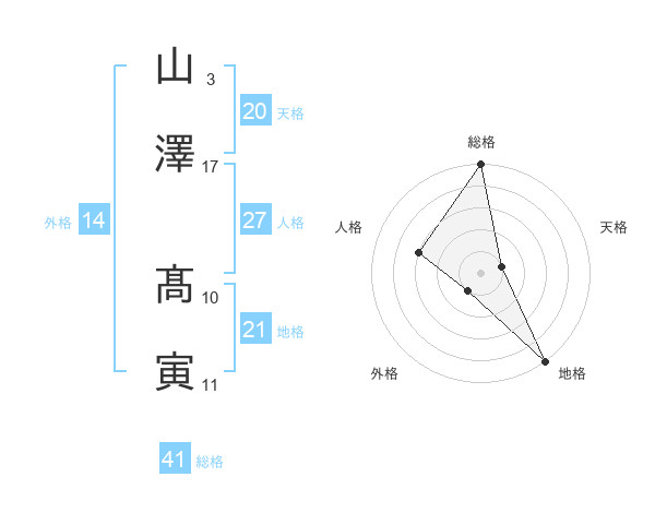 山澤 髙寅さんを姓名の画数から五運を鑑定