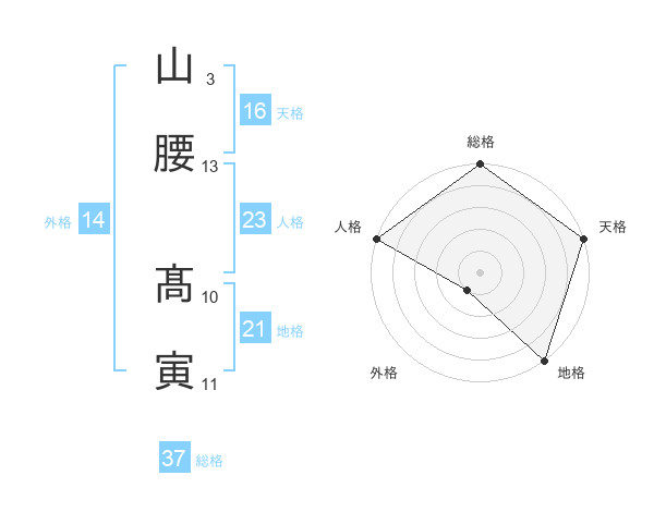 山腰 髙寅さんの総格は37画の5点!