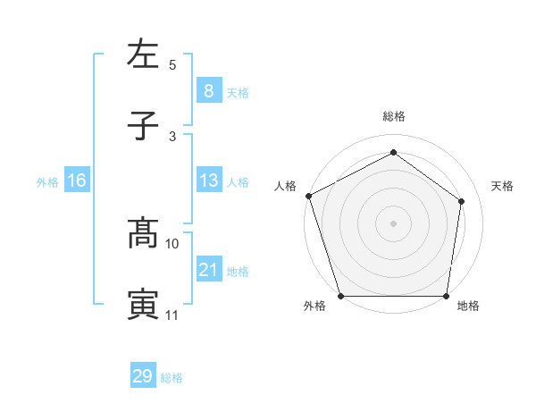 左子 髙寅さんを姓名の画数から五運を鑑定