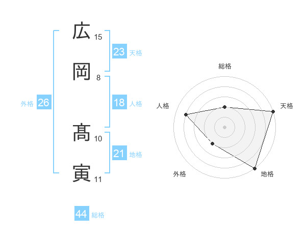 広岡 髙寅さんの総格は44画の2点!