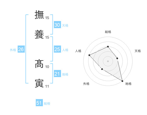 撫養 髙寅さんを姓名の画数から五運を鑑定