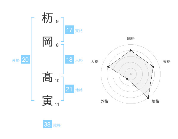 杤岡 髙寅さんの総格は38画の4点!