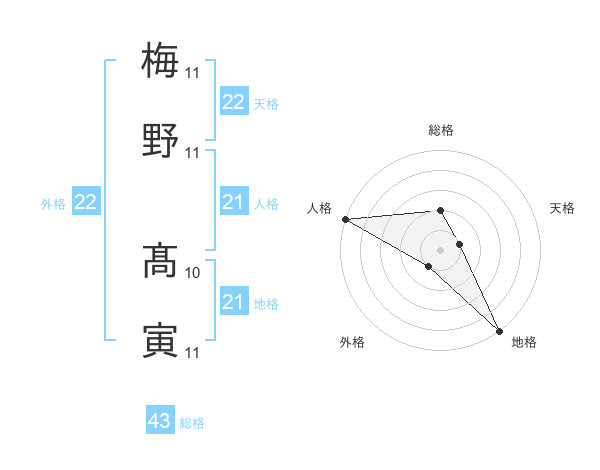 梅野 髙寅さんを姓名の画数から五運を鑑定