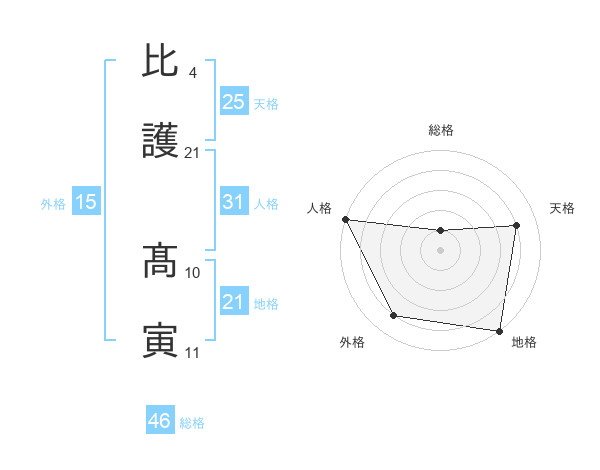 比護 髙寅さんの総格は46画の1点!