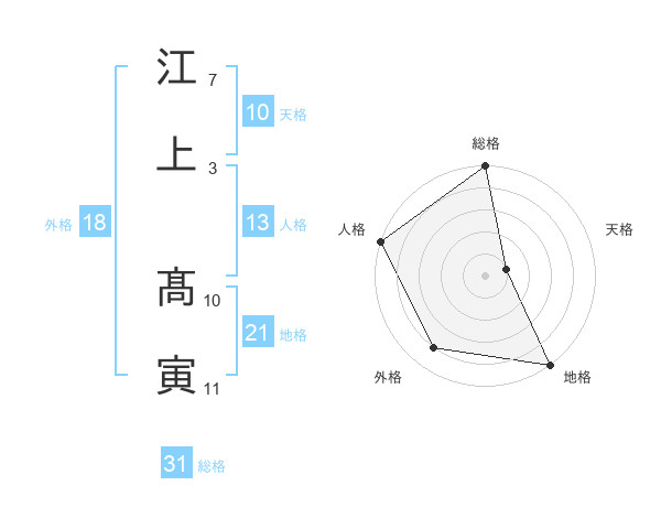 江上 髙寅さんの総格は31画の5点!