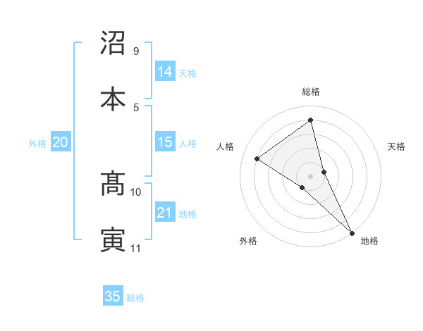 沼本 髙寅さんを姓名の画数から五運を鑑定