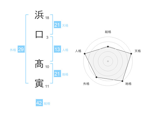 浜口 髙寅さんの天格は21画の5点!