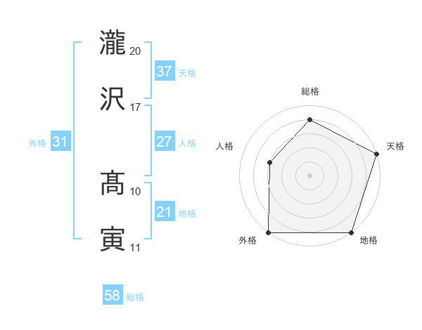 瀧沢 髙寅さんの外格は31画の5点!