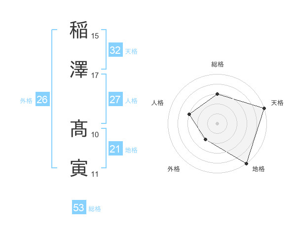 稲澤 髙寅さんを姓名の画数から五運を鑑定