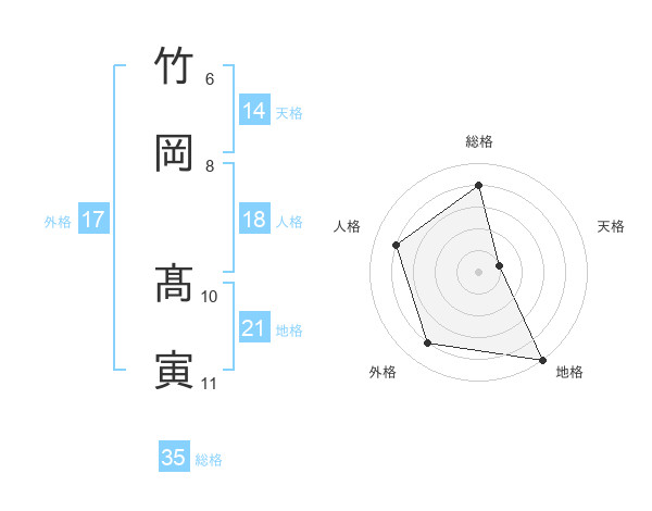 竹岡 髙寅さんを姓名の画数から五運を鑑定