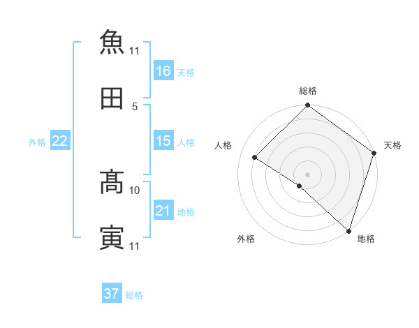 魚田 髙寅さんの総格は37画の5点!