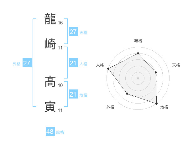 龍崎 髙寅さんの地格は21画の5点!
