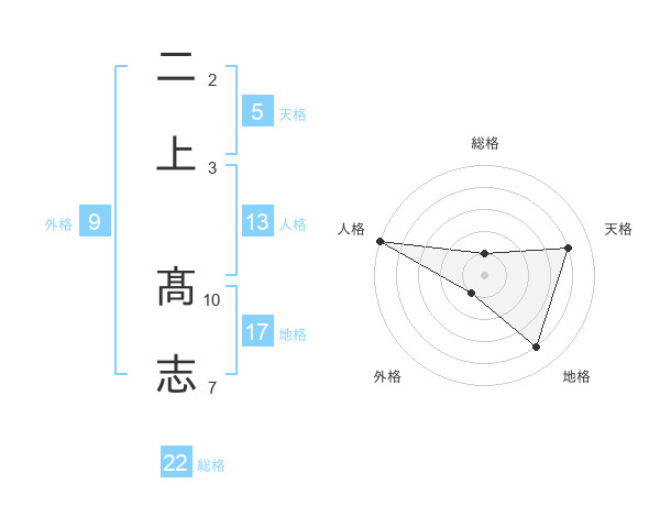 二上 髙志さんの総格は22画の1点!