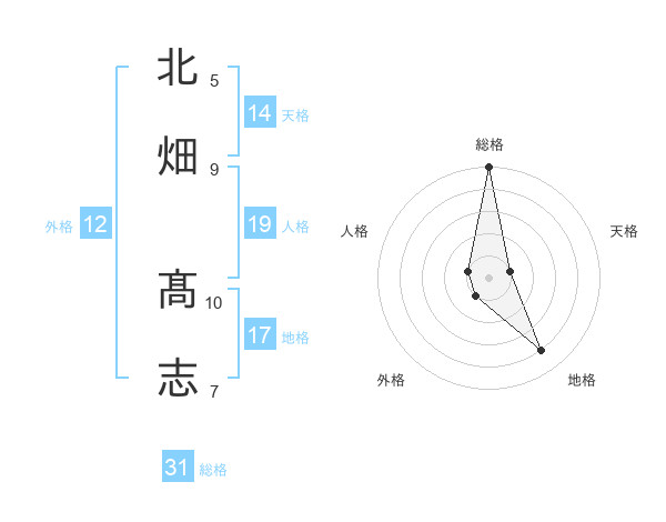 北畑 髙志さんを姓名の画数から五運を鑑定