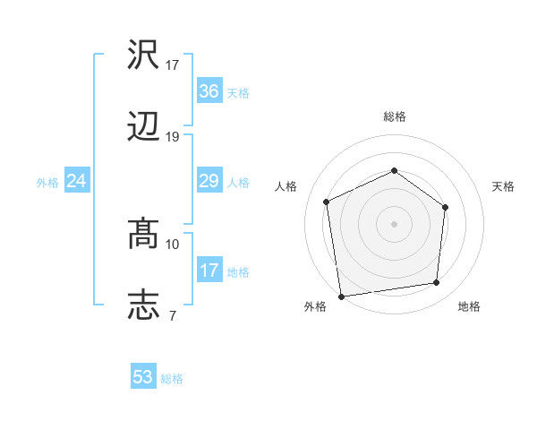 沢辺 髙志さんの総格は53画の3点!