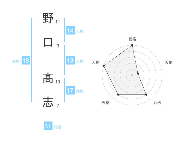 野口 髙志さんの総格は31画の5点!