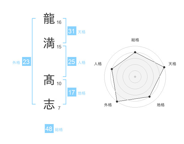 龍満 髙志さんの外格は23画の5点!