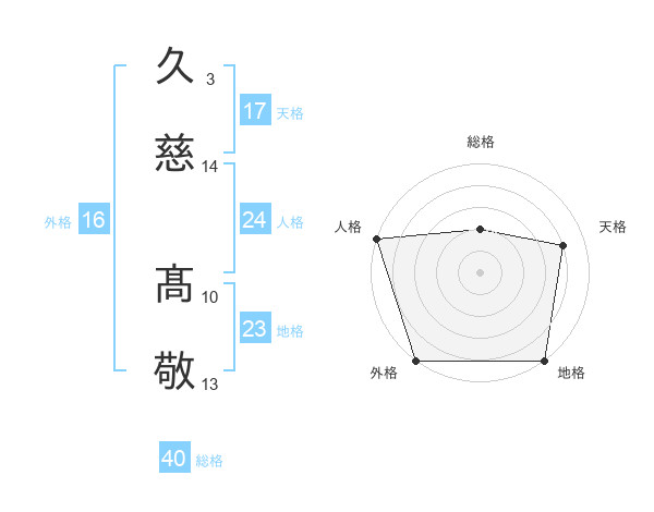 久慈 髙敬さんの天格は17画の4点!