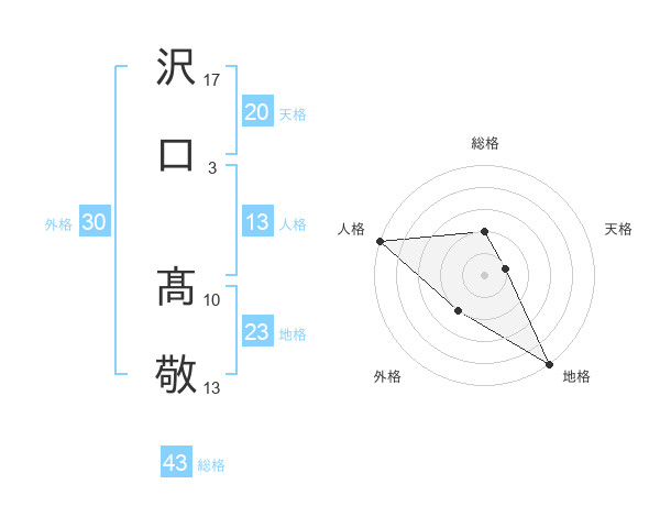 沢口 髙敬さんの総格は43画の2点!