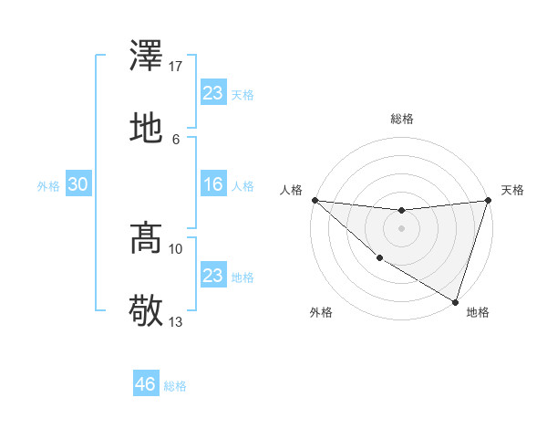 澤地 髙敬さんを姓名の画数から五運を鑑定