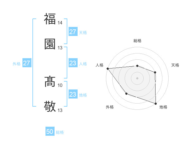 福園 髙敬さんを姓名の画数から五運を鑑定