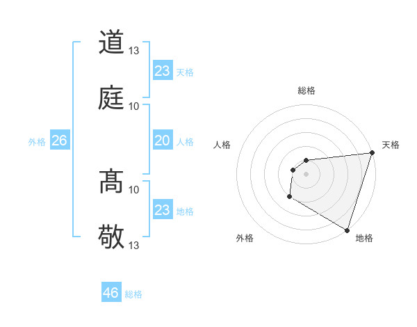 道庭 髙敬さんを姓名の画数から五運を鑑定