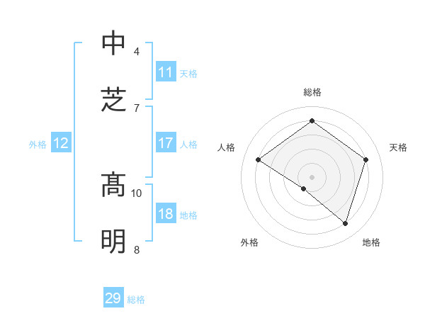 中芝 髙明さんを姓名の画数から五運を鑑定