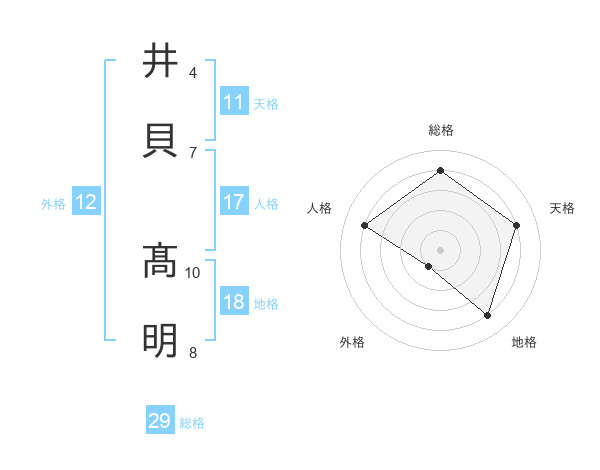 井貝 髙明さんの総格は29画の4点!