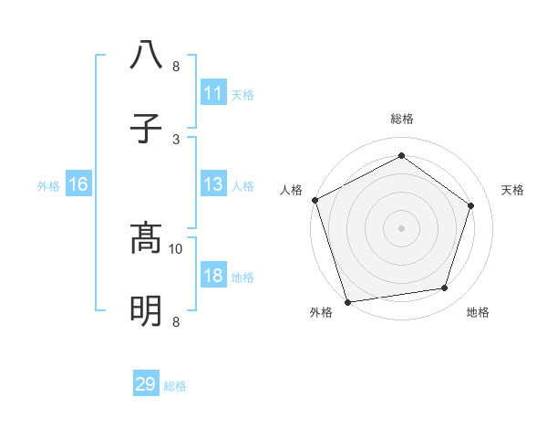 八子 髙明さんの総格は29画の4点!